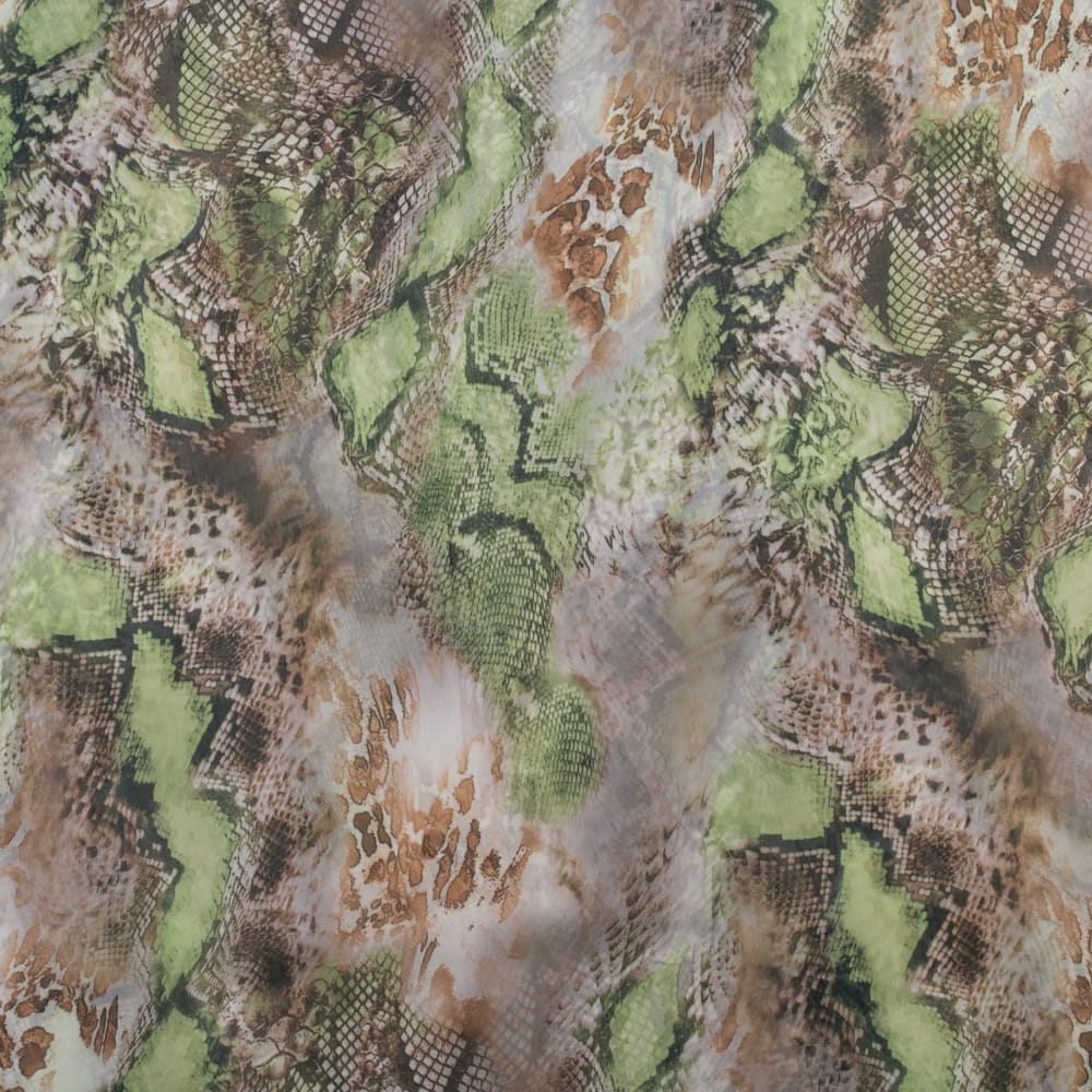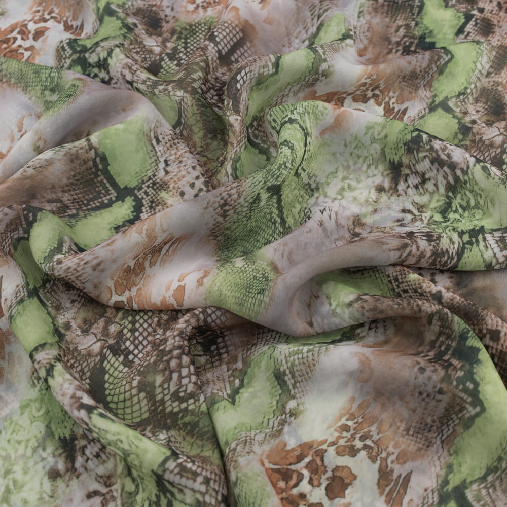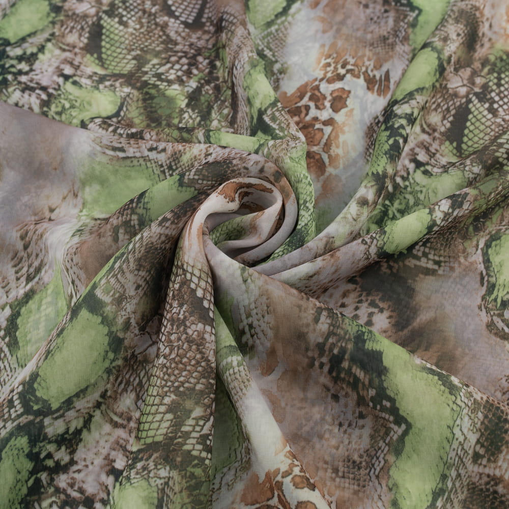Tkanina szyfon wzór skóra węża kolor zielono beżowy