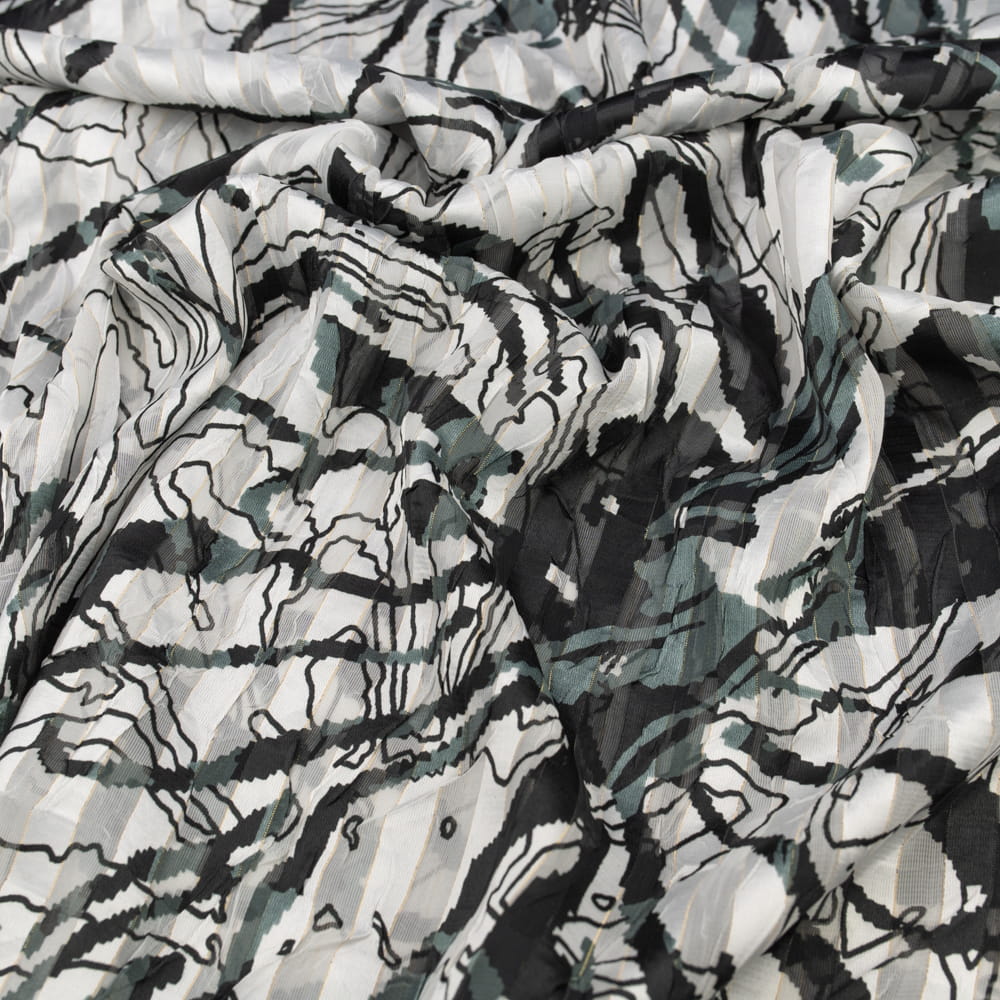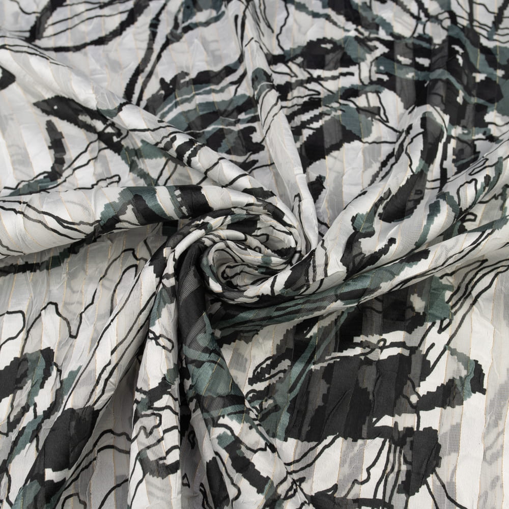 Tkanina szyfon złota nitka wzór paski i kwiaty kolor szaro czarny