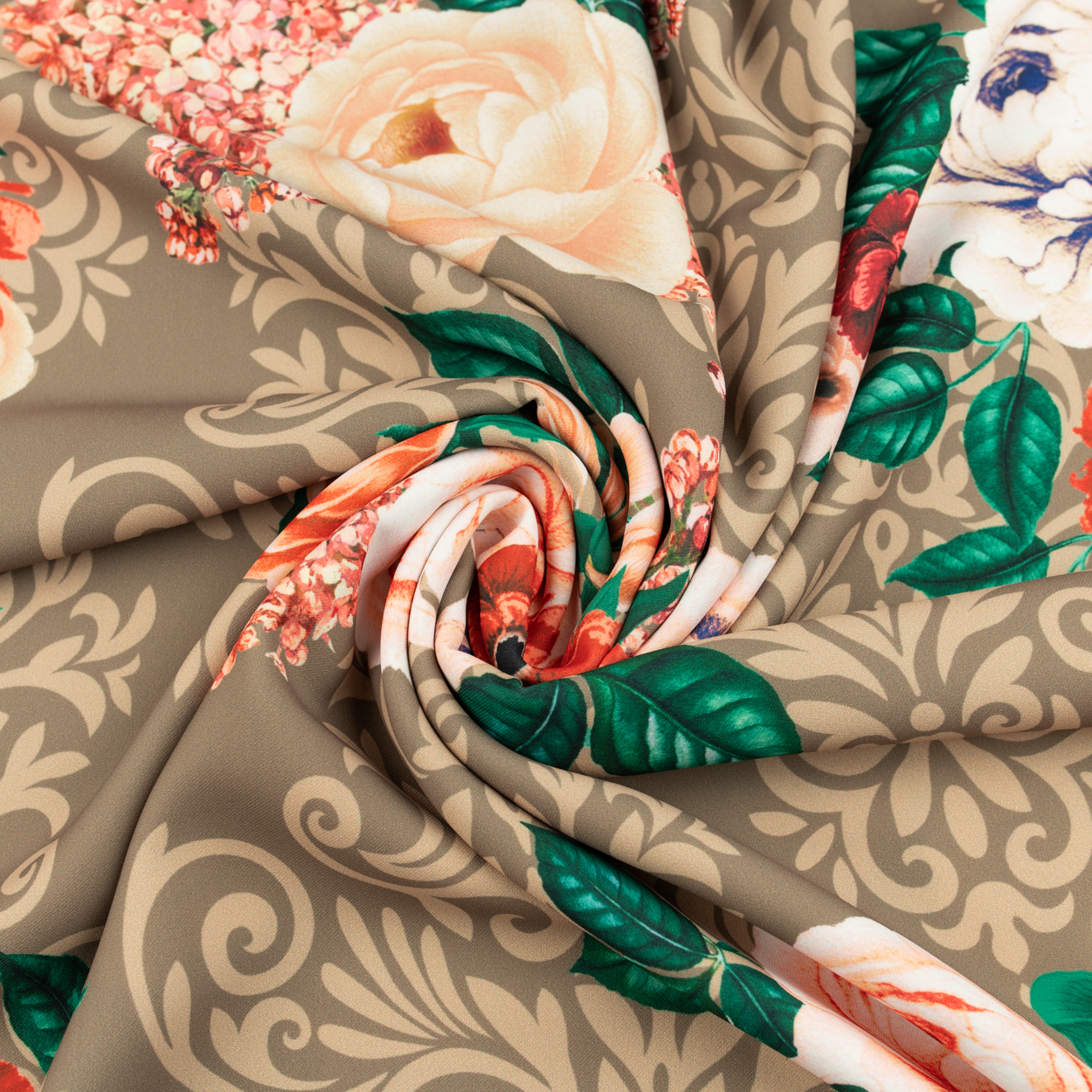 Tkanina wiskoza twill w kwiaty tło brązowe