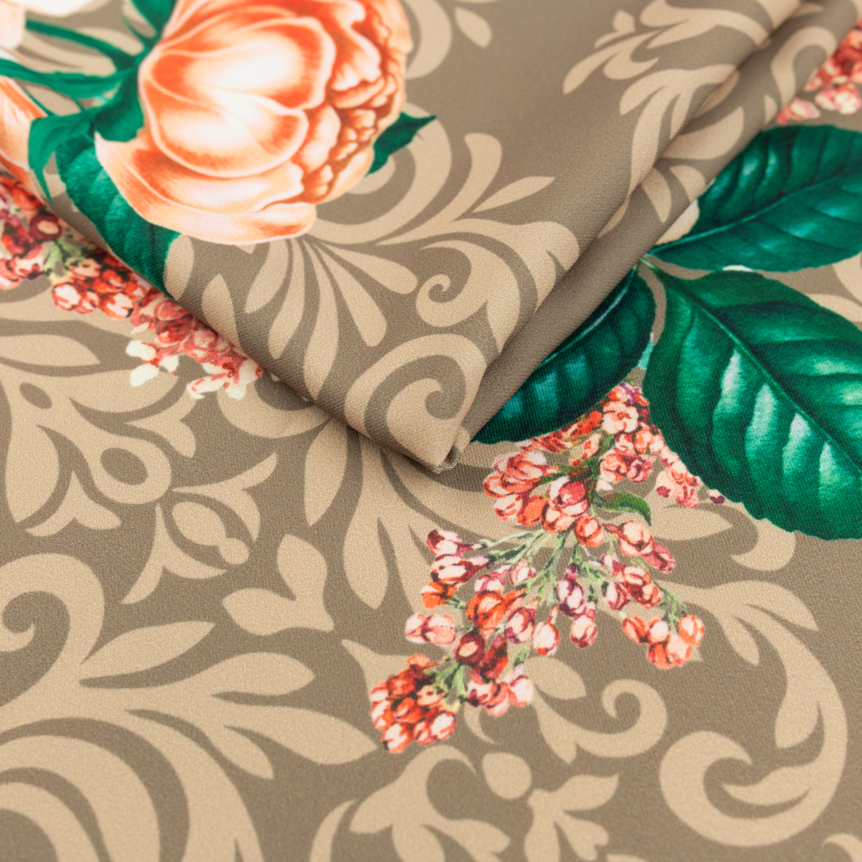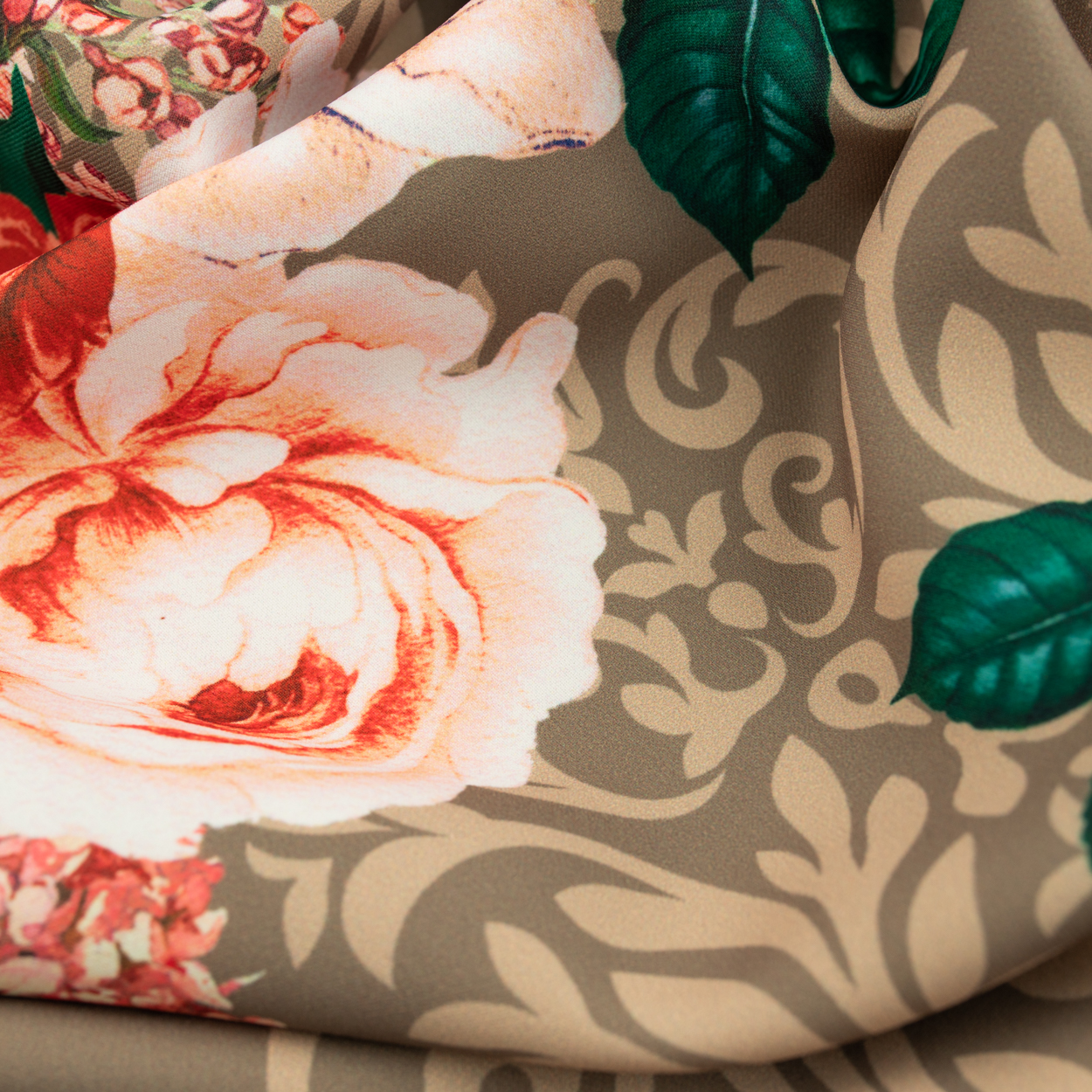 Nadruk naniesiono nowoczesną techniką reaktywną, cyfrową. Dzięki temu print jest trwały, cieszy się doskonałym wysyceniem barw oraz ostrością krawędzi wzoru. Wiskoza jest nieelastyczna bardzo przyjemna i delikatna, układa się miękko i lekko.