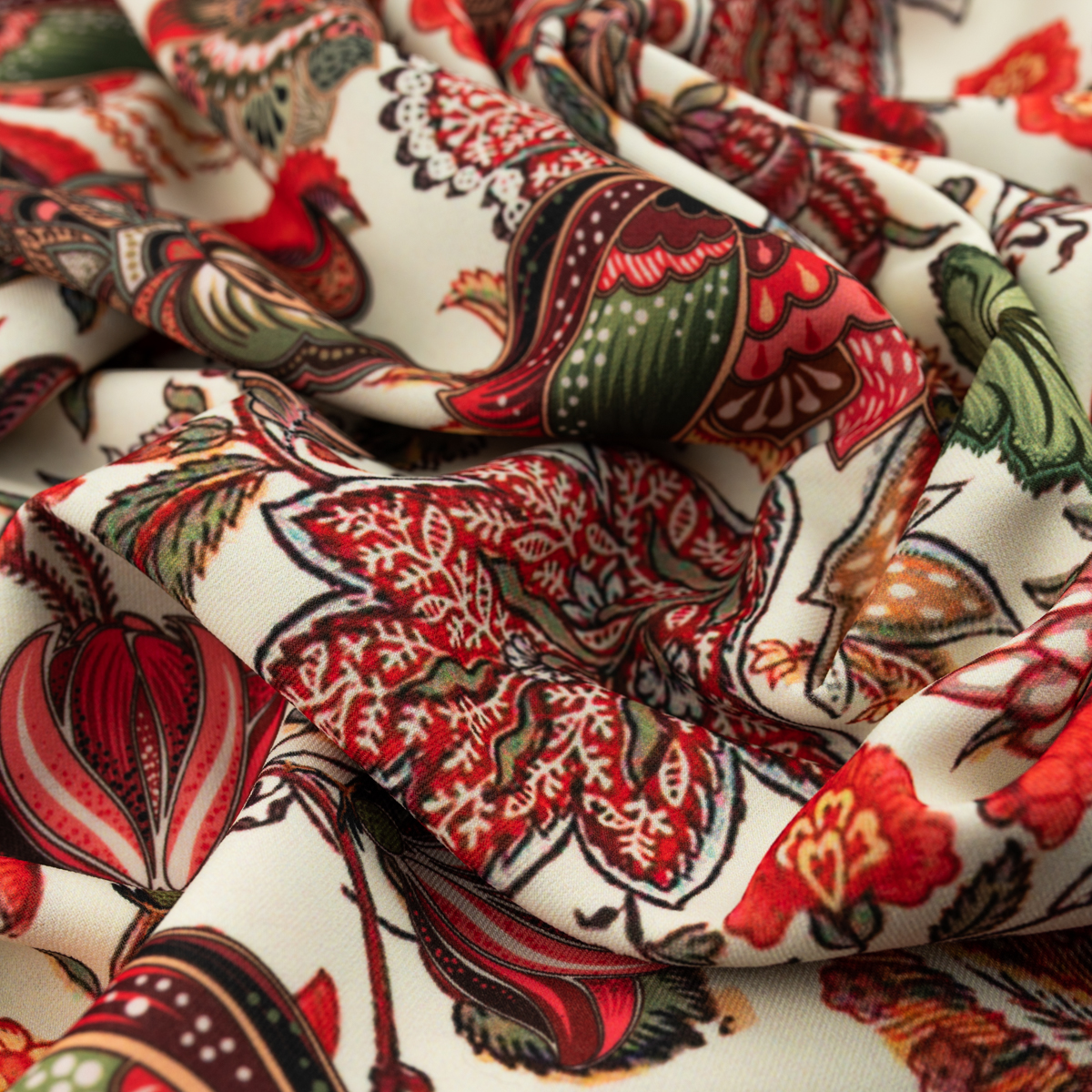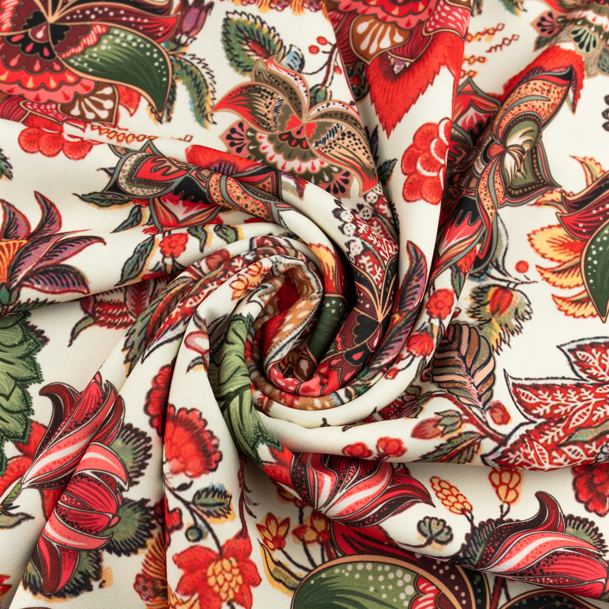 Tkanina wiskoza twill w kwiaty tło kremowe