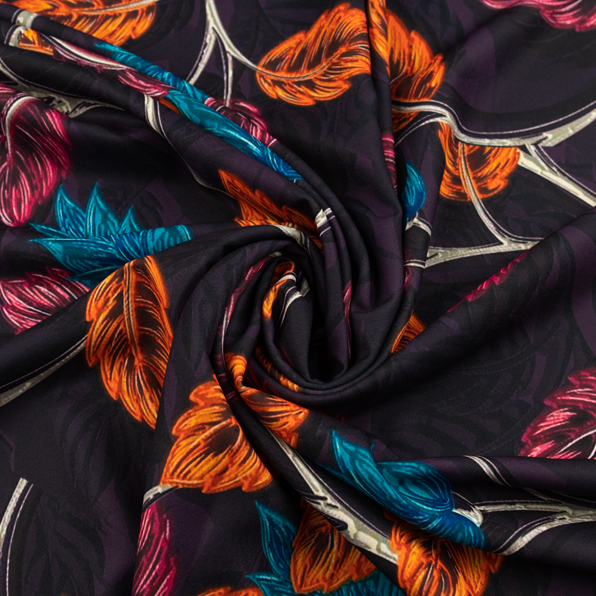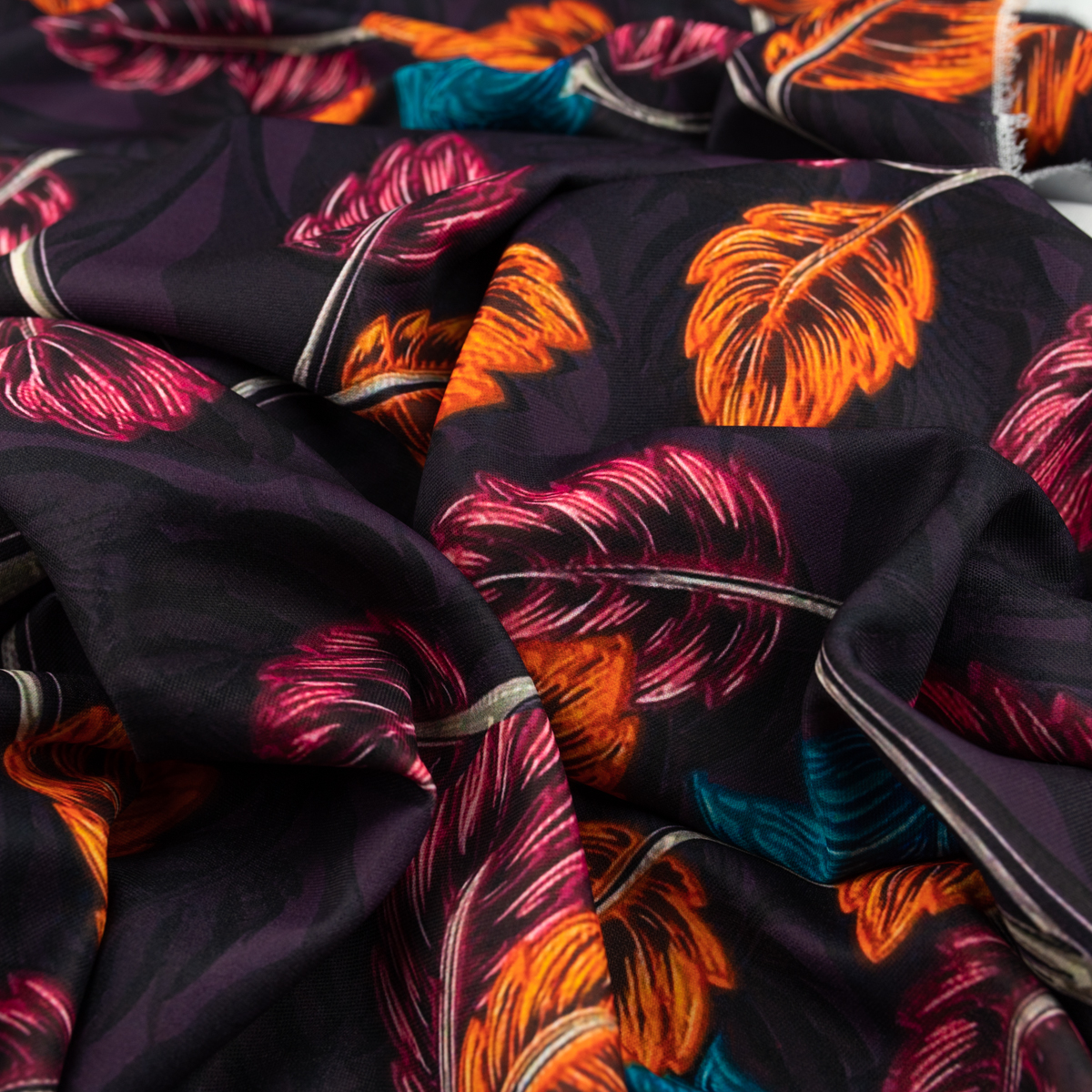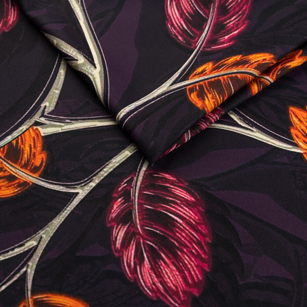 Tkanina wiskoza twill w liście odcienie fioletowego
