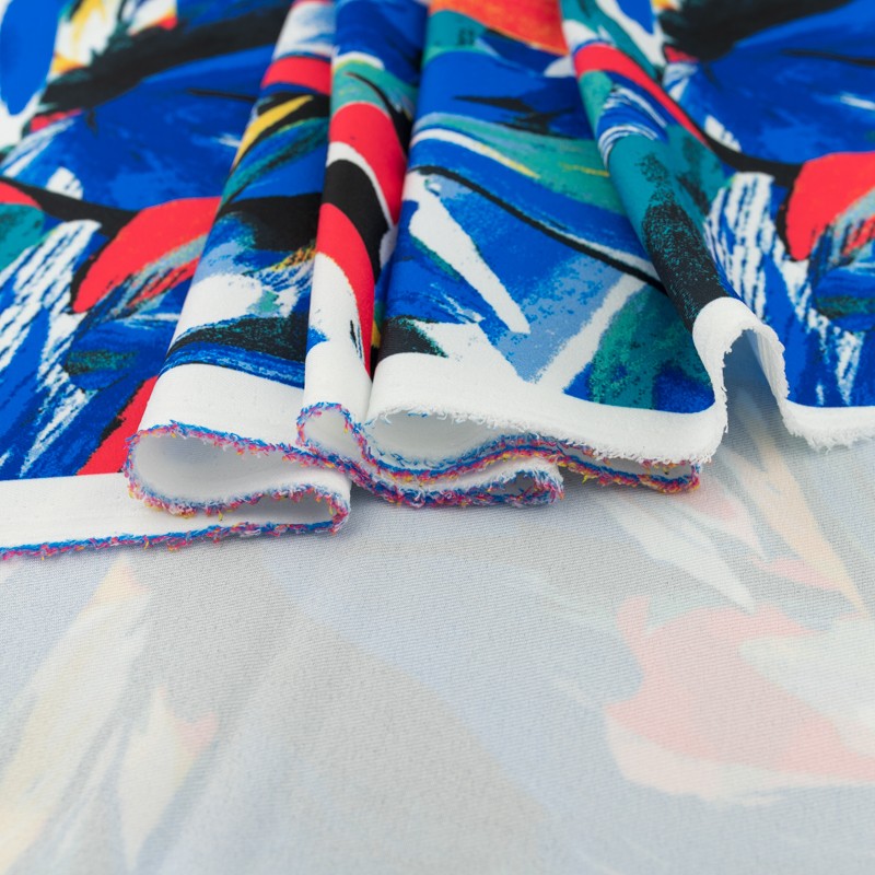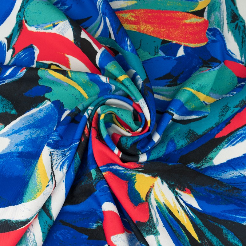 Nadruk naniesiono nowoczesną techniką reaktywną, cyfrową. Dzięki temu print jest trwały, cieszy się doskonałym wysyceniem barw oraz ostrością krawędzi wzoru. Wiskoza jest nieelastyczna bardzo przyjemna i delikatna, układa się miękko i lekko.