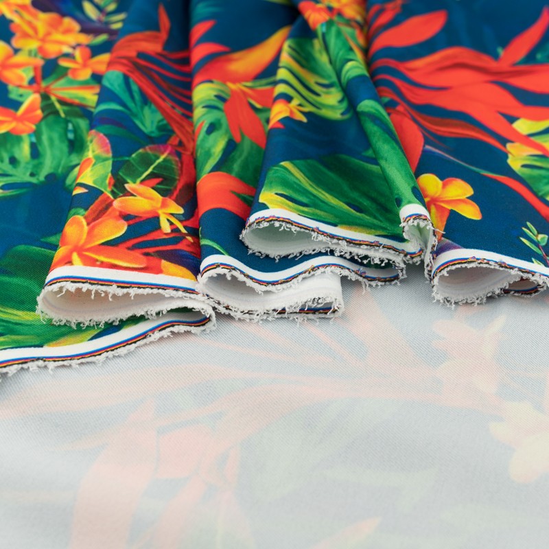 Nadruk naniesiono nowoczesną techniką reaktywną, cyfrową. Dzięki temu print jest trwały, cieszy się doskonałym wysyceniem barw oraz ostrością krawędzi wzoru. Wiskoza jest nieelastyczna bardzo przyjemna i delikatna, układa się miękko i lekko.