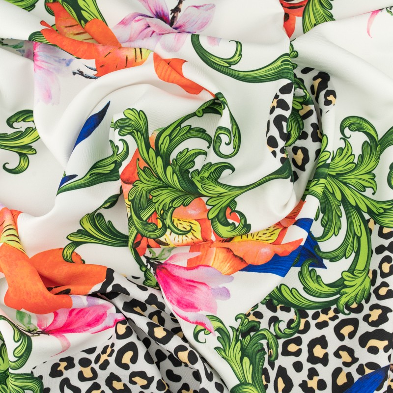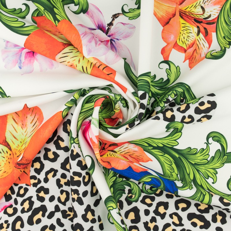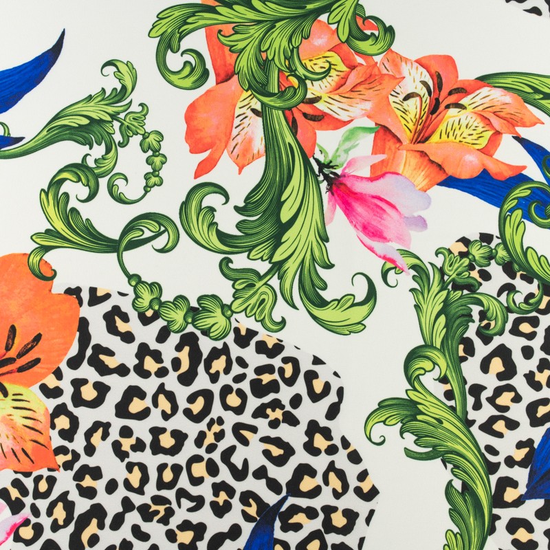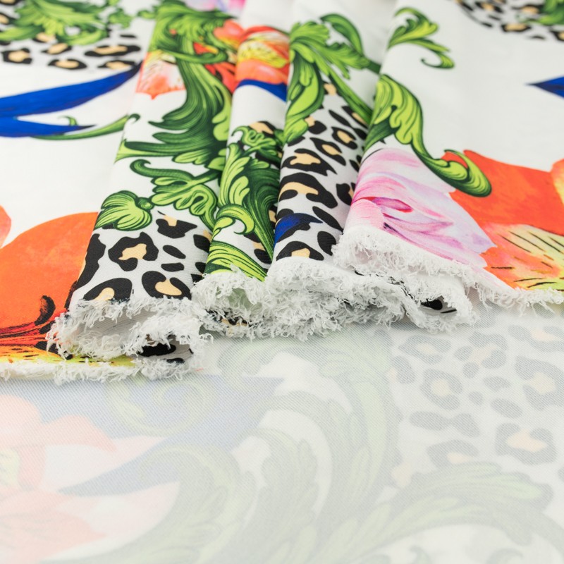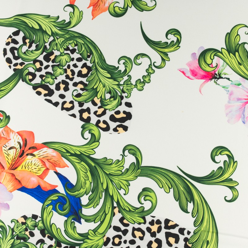 Nadruk naniesiono nowoczesną techniką reaktywną, cyfrową. Dzięki temu print jest trwały, cieszy się doskonałym wysyceniem barw oraz ostrością krawędzi wzoru. Wiskoza jest nieelastyczna bardzo przyjemna i delikatna, układa się miękko i lekko.