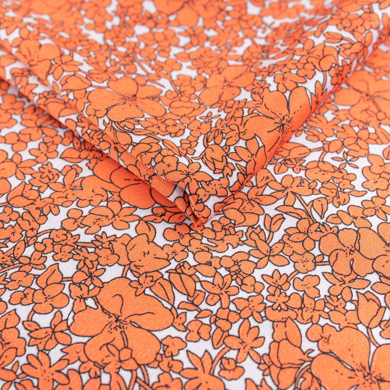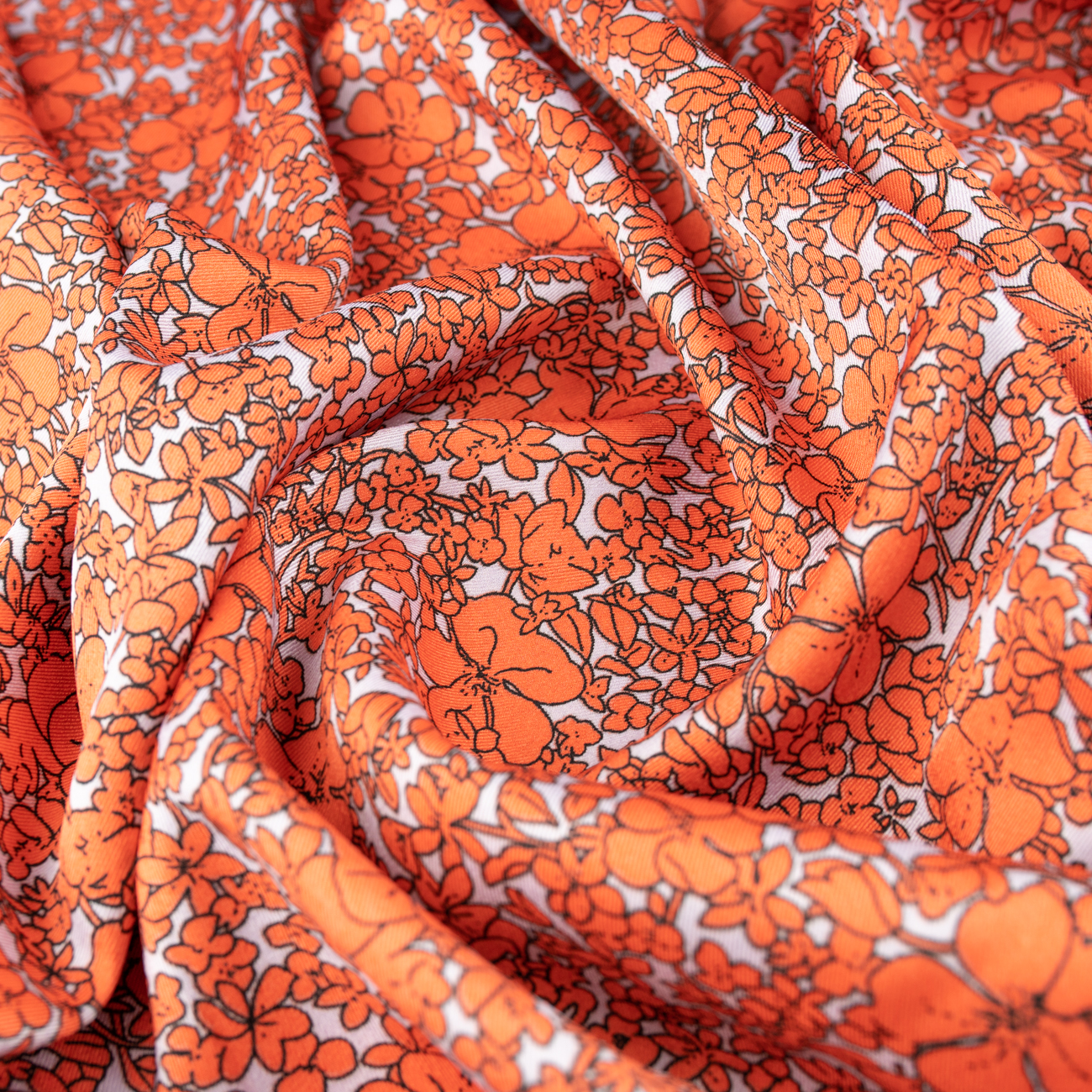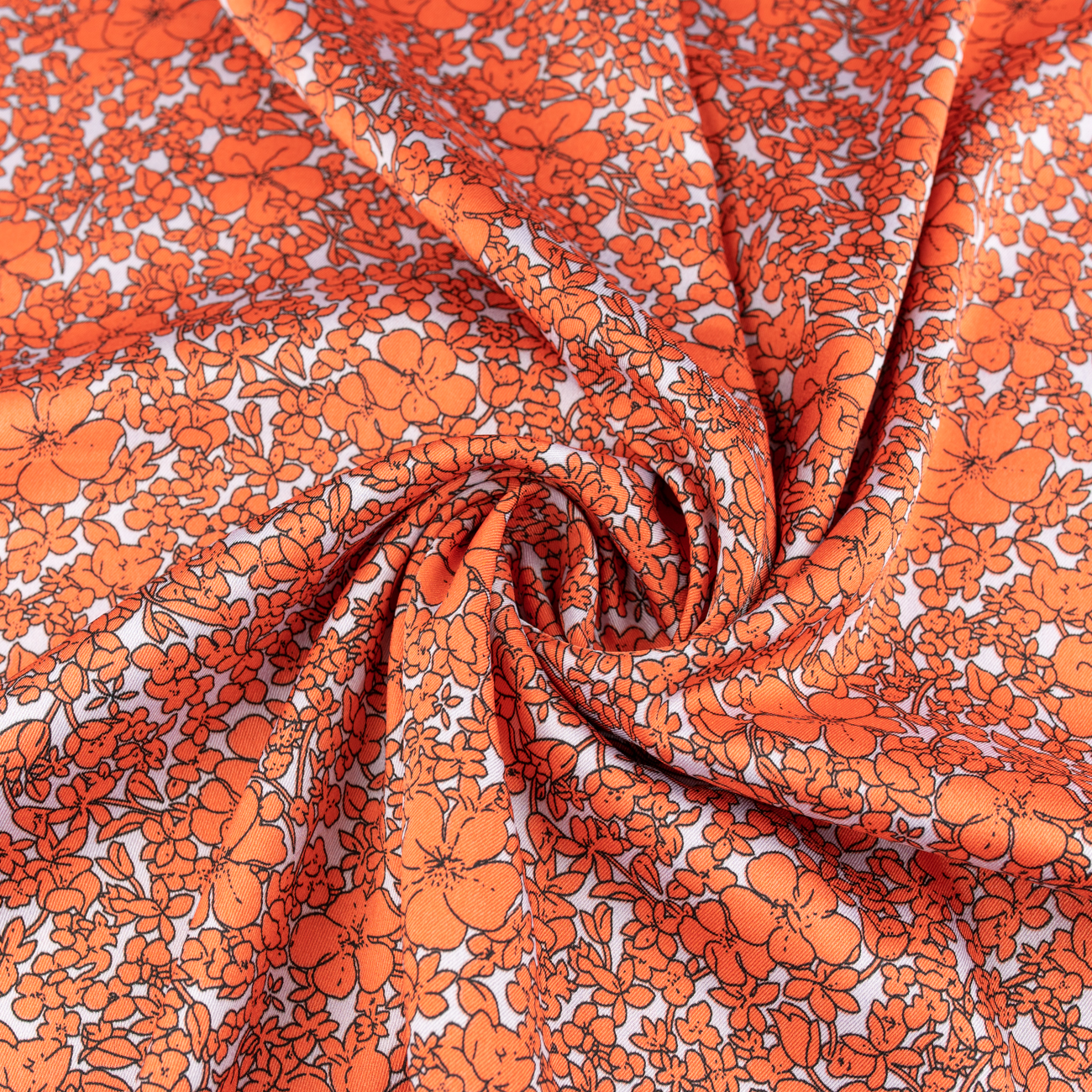 Tkanina wiskoza twill wzór kwiaty na białym tle