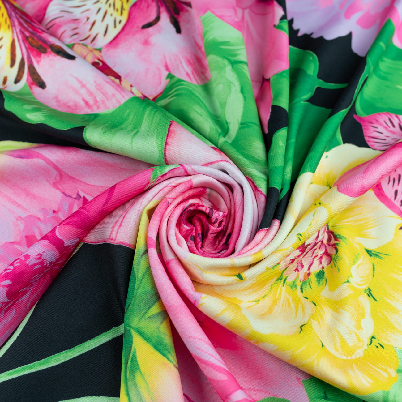Tkanina wiskoza twill wzór kwiaty na czarnym tle