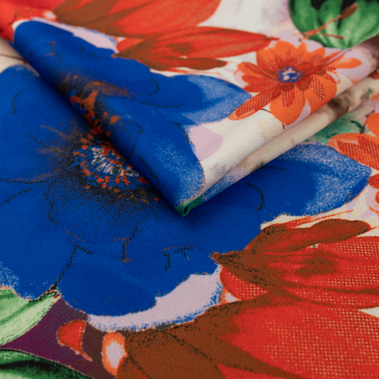 Nadruk naniesiono nowoczesną techniką reaktywną, cyfrową. Dzięki temu print jest trwały, cieszy się doskonałym wysyceniem barw oraz ostrością krawędzi wzoru. Wiskoza jest nieelastyczna bardzo przyjemna i delikatna, układa się miękko i lekko.