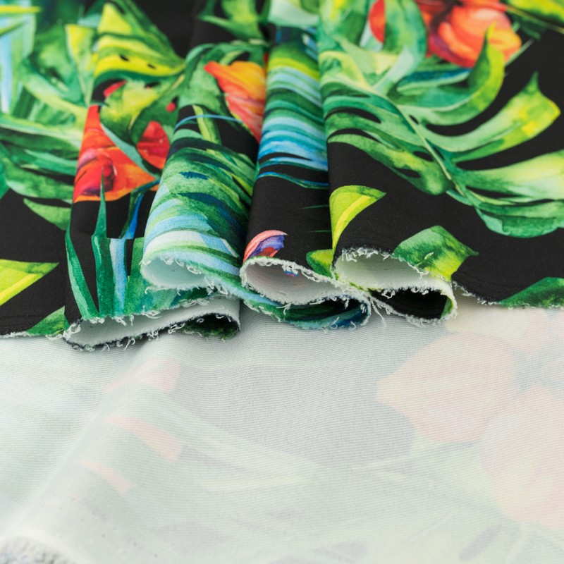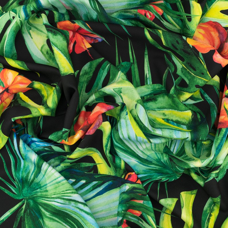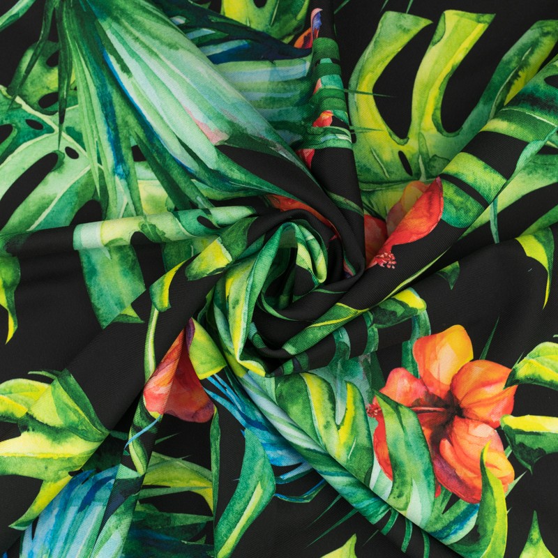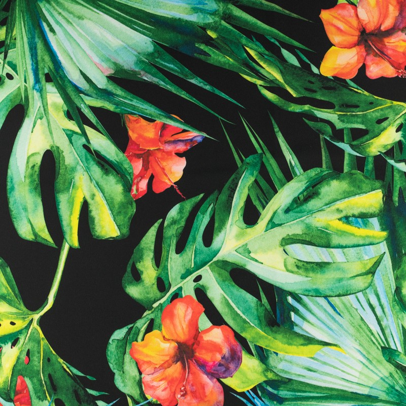 Tkanina wiskoza twill wzór liść monstery kolor czarny