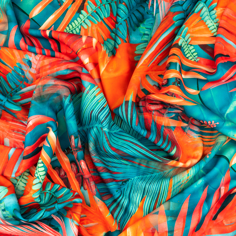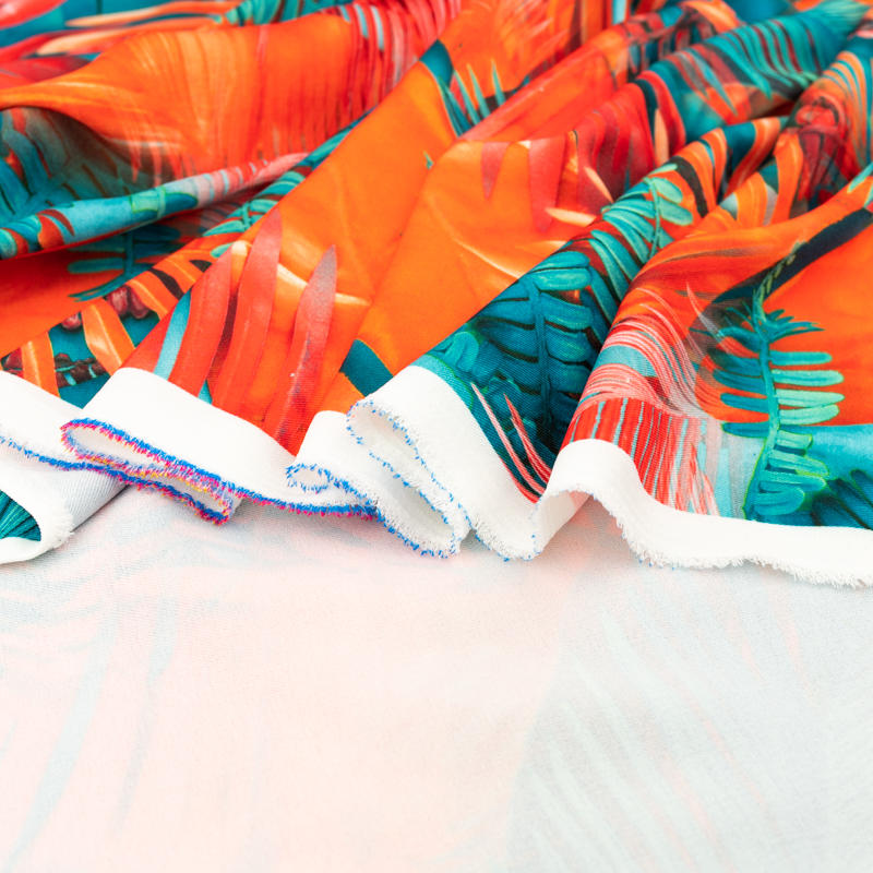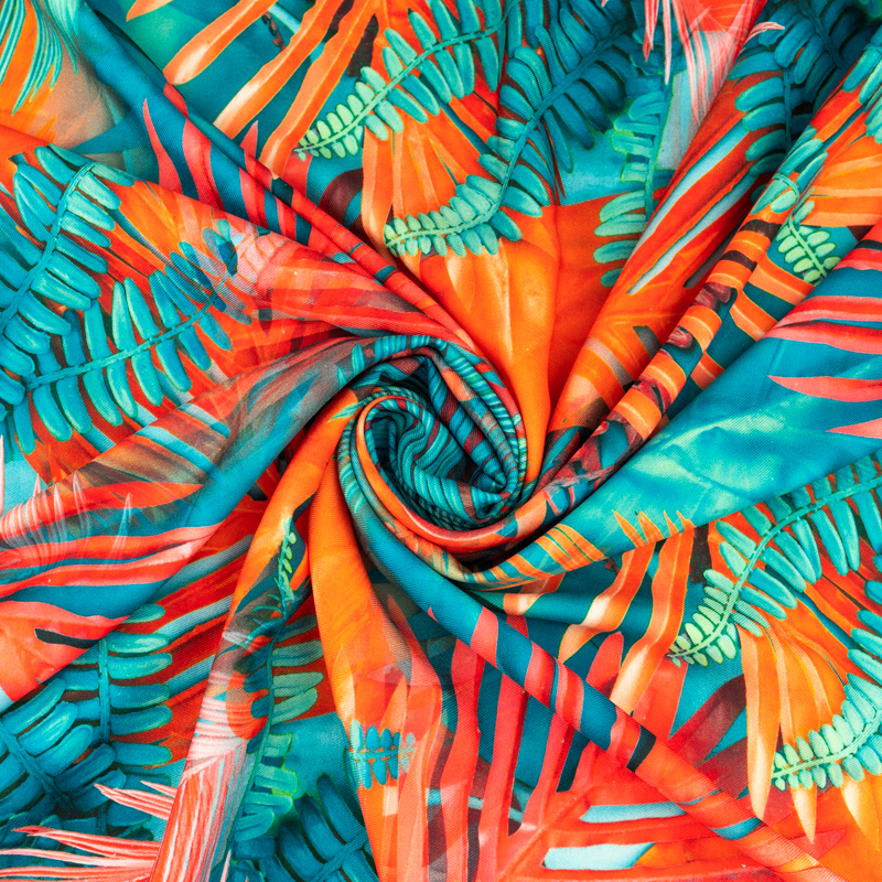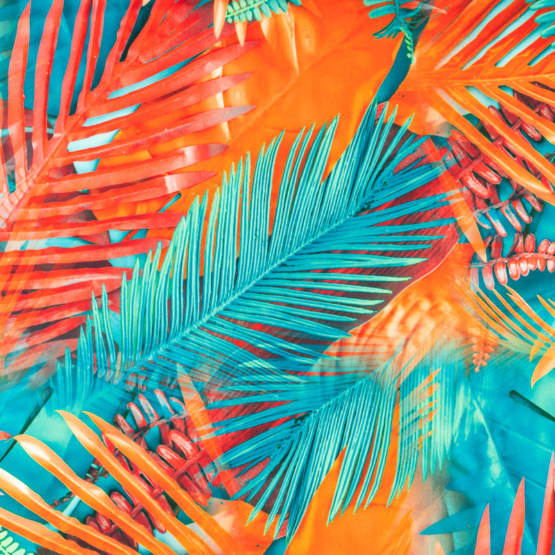 Tkanina wiskoza twill wzór liście palmy kolor czerwony