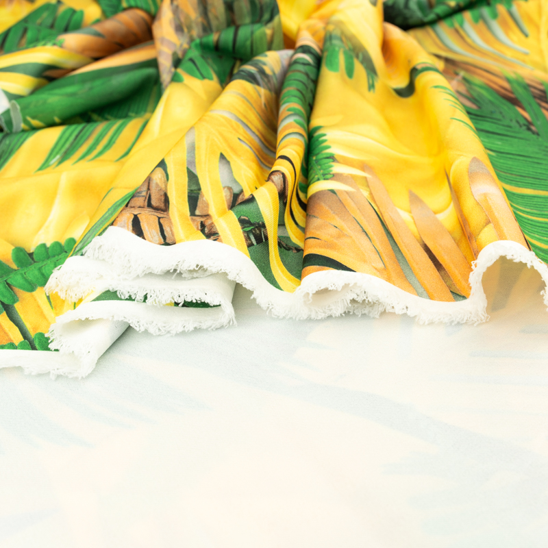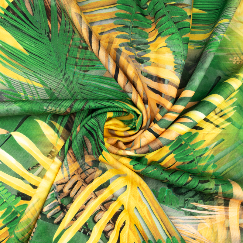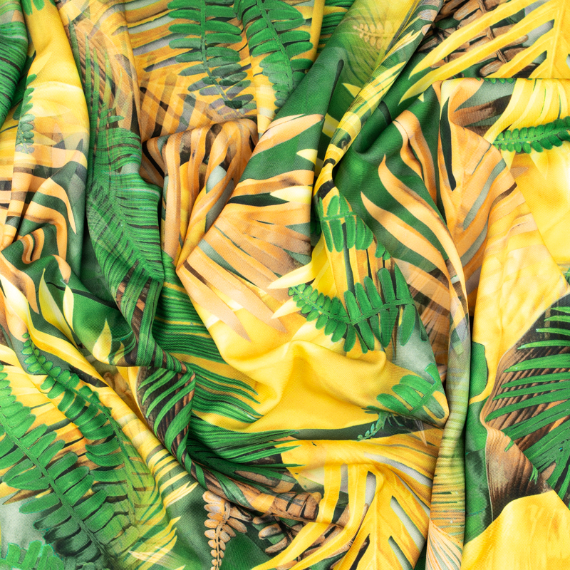 Tkanina wiskoza twill wzór liście palmy kolor żółty