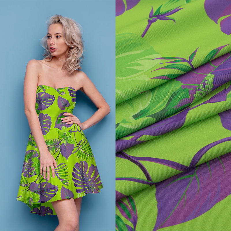 Tkanina wiskoza twill wzór monstera kolor zielony