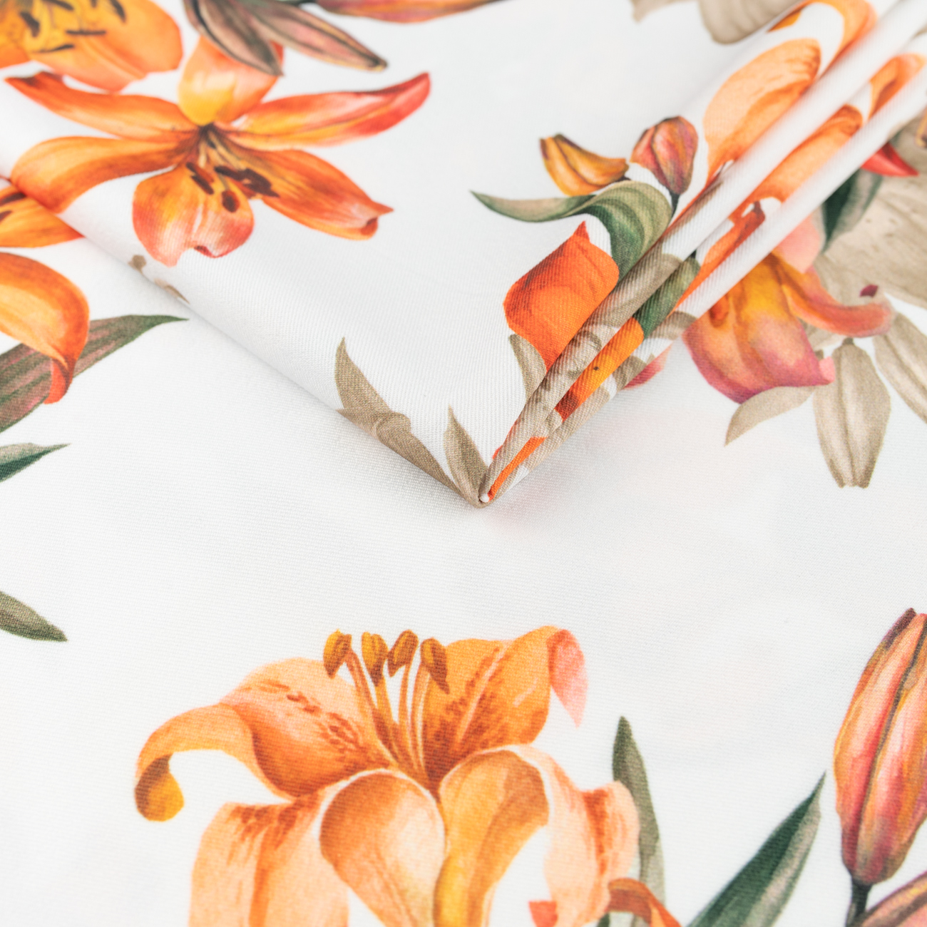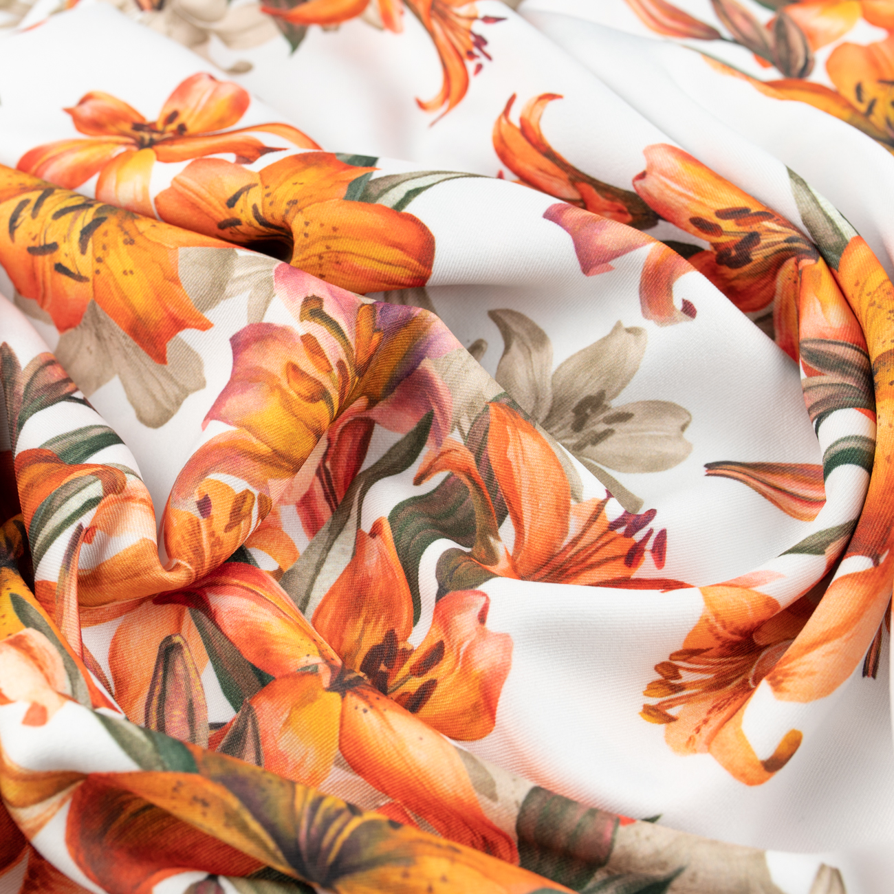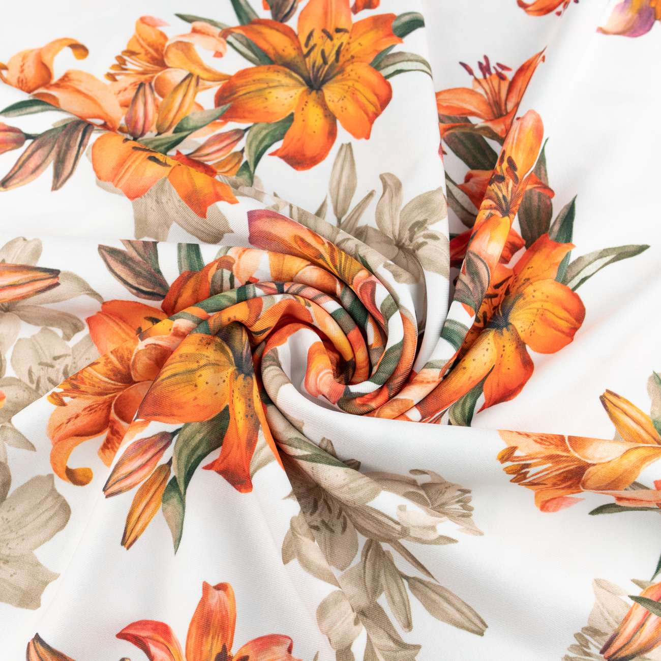 Tkanina wiskoza twill wzór pomarańczowe kwiaty tło ecru
